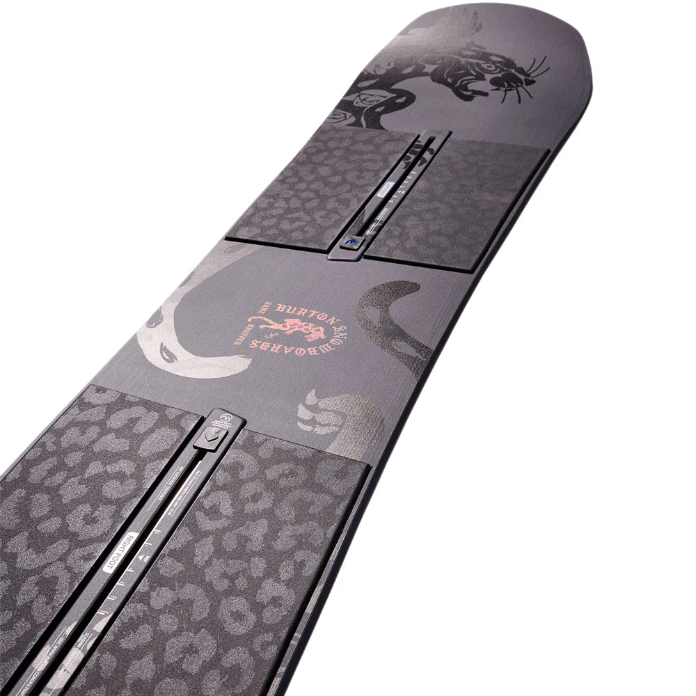 Das Burton Snowboard mit Twin Shape besitzt den PurePop Hybrid Camber, welcher dem Brett Sprungkraft, Reaktionsvermögen und Stabilität verleiht. Die flach aufliegenden Parts bei den Kontaktpunkten sorgen für ein spielerisches Fahrverhalten. Außerdem ist das Name Dropper das einzige Herren Snowboard mit dem Filet-O-Flex EVA Matten im Bindungsbereich, dank dieser Erfindung wird das Board nochmals bei harten Landungen, aber auch bei herkömmlichen Vibrationen beim Fahren, abgedämpft. Dadurch bekommt das Board eine angenehme Laufruhe.
