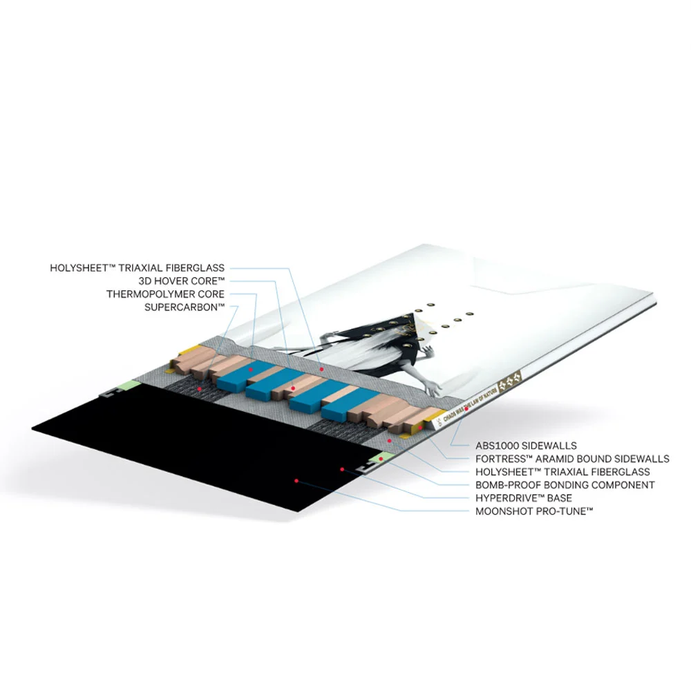 Das Super Defenders of Awesome von Capita ist die Vorfront der Snowboard-Innovation. Das Shape und der Camber basieren auf dem DOA, somit ist es ein absolut vielseitiges und kraftvolles All Mountain Snowboard. Das Besondere ist der dreidimensionale Kern mit Pappel-Paulownienholz und 4 Streifen aus recyceltem Thermoplastic. Diese Konstruktion sorgt für eine optimale Kraftübertragung bei einem minimalen Gewicht. Unterstützt wird der Kern durch triaxialen Fiberlglas- und Carboneinlagen. Im Kantenbereich besitzt das Super DOA zusätzliches Kevlargewebe. Die Hyperdrive Base ist mit einem Steinschliff versehen und vorgewachst. Das Snowboard ist ein Wintersportgerät der Extraklasse, hergestellt im Capita Mothership in Österreich.