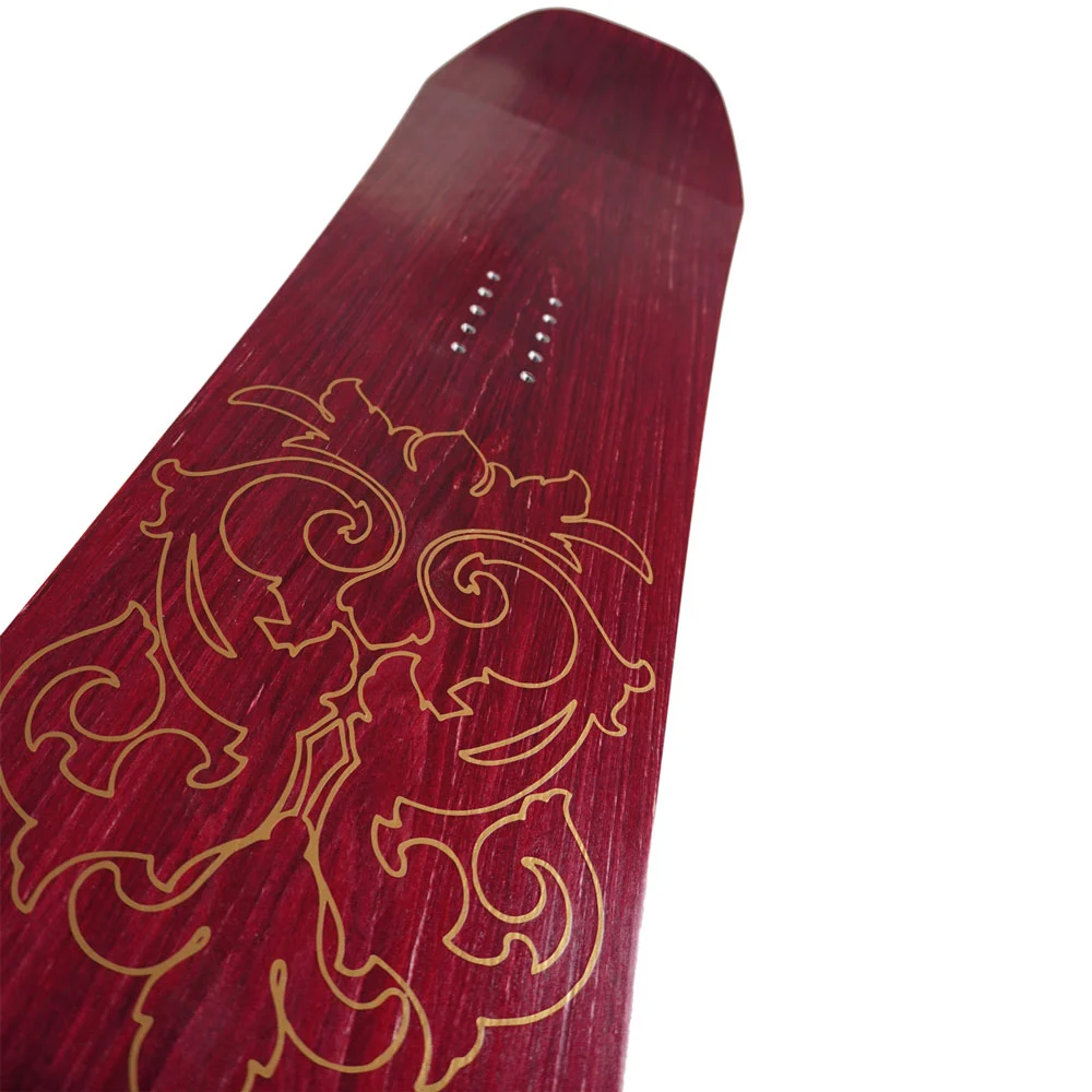Mit Frau Holle macht das Snowboarden einfach nur Spaß! Egal ob auf der Piste, im Park oder Backcountry, das Board holt das Beste aus dir heraus und fühlt sich auf dem kompletten Berg zuhause. Die traditionelle Vorspannung in der Boardmitte bringt verlässlichen Kantenhalt und Laufruhe, während die Rocker-Tips für ein spielerisches Fahrgefühl und mühelosen Auftrieb im Tiefschnee sorgen. Optisches Highlight ist das handgefärbte Ahornfurnier mit goldenem Ornament-Linework welches wie Seide in der Sonne schimmert. Die weißen ABS Sidewalls und die gleichfarbige Base mit dem SASA Schriftzug im passenden Coral-Farbton runden das Gesamtdesign ab. Im Herzen trägt Frau Holle einen Holzkern aus Pappel und Buche, welcher mit Glasfaser und vier Carbonstreifen verstärkt ist und somit für Sprungkraft und Reaktionsvermögen sorgt. Diese Konstruktion ermöglicht dem Brett eine verlässliche Kraftübertragung und einen langlebigen Flex.