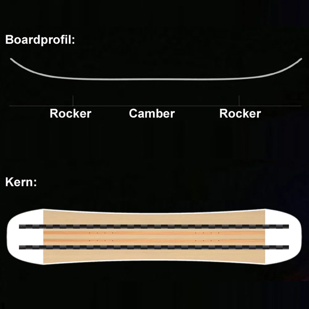 - Camberprofil: Twin Hybrid Camber – Vorspanung Boardmitte/Rocker Tips